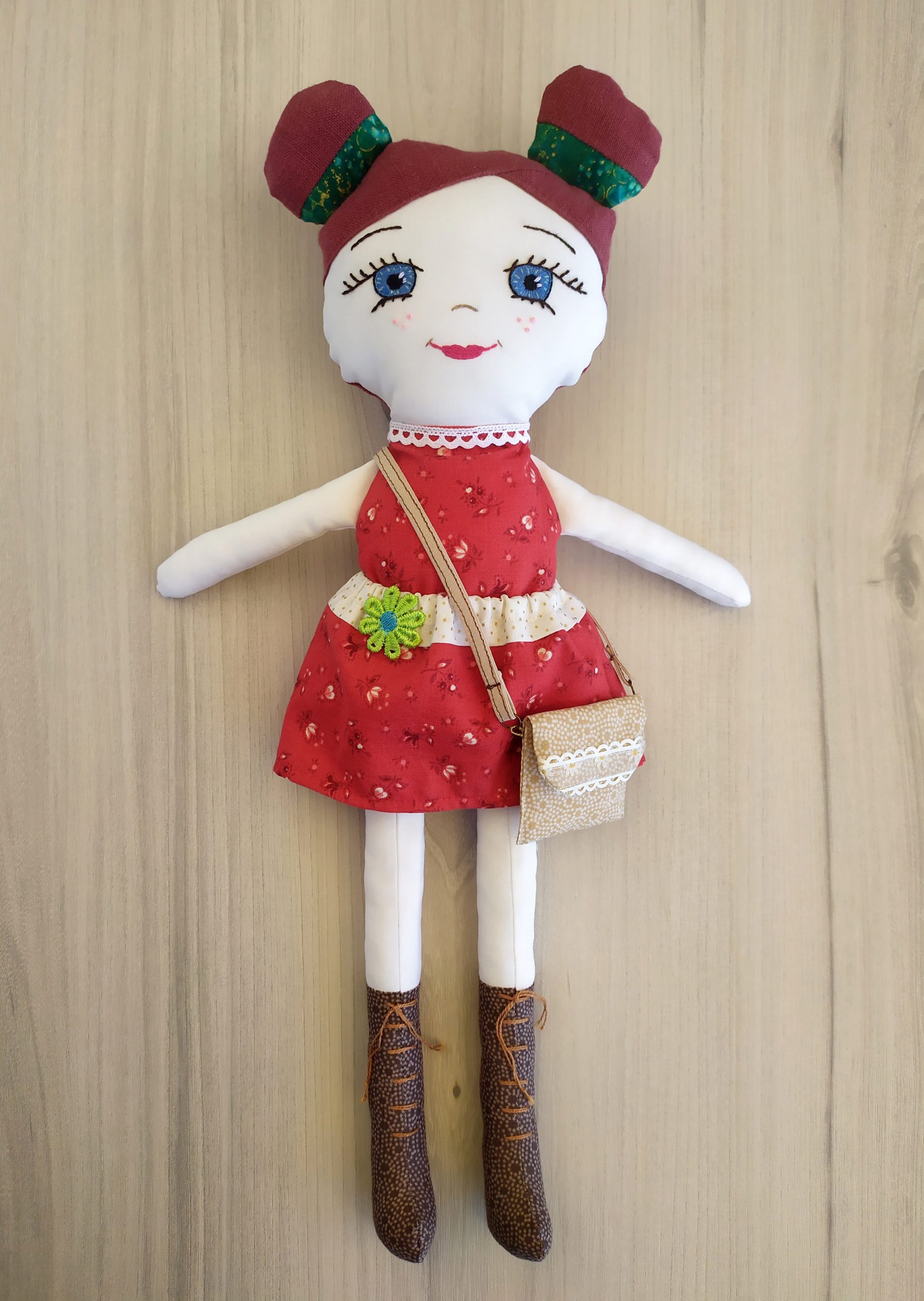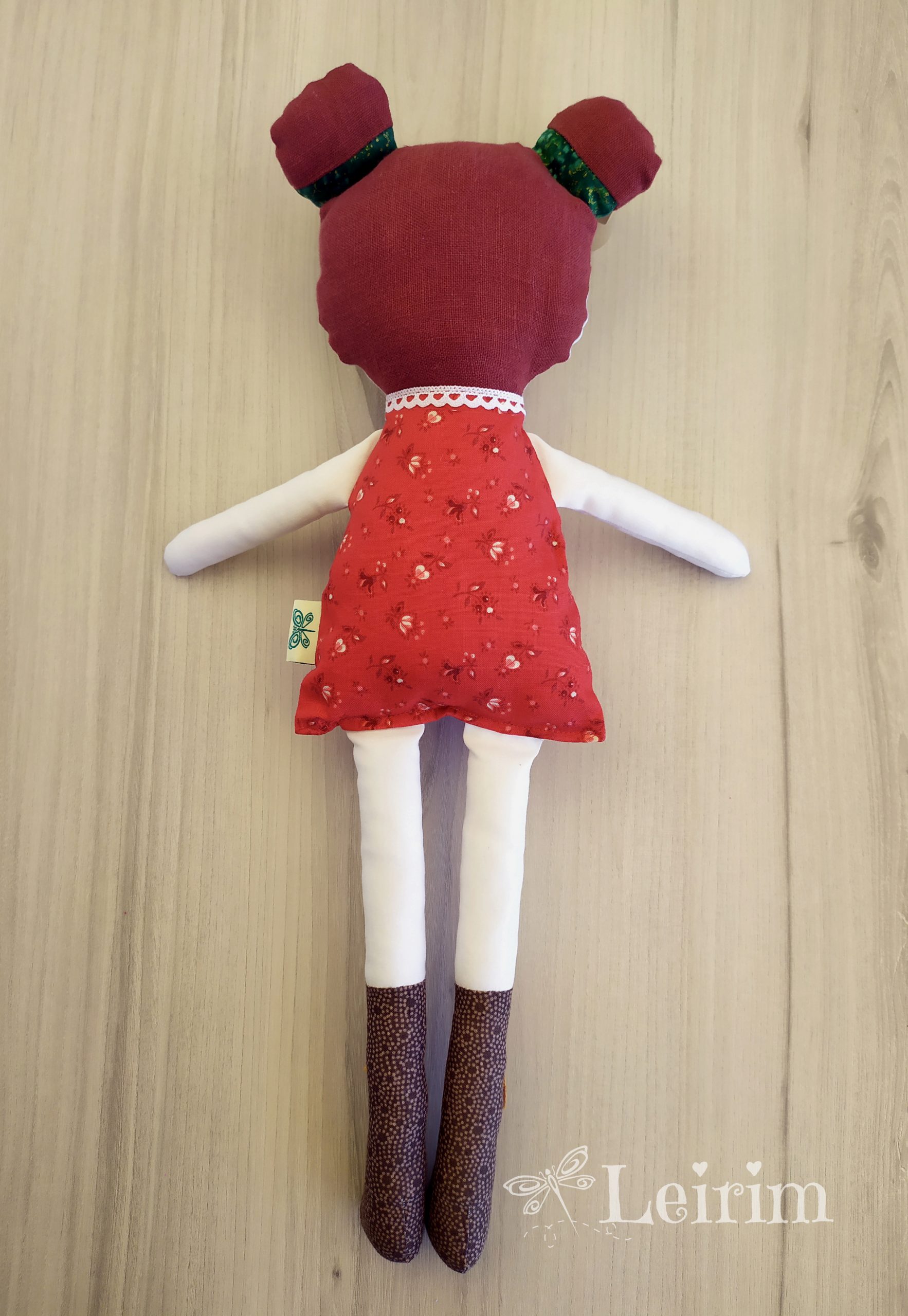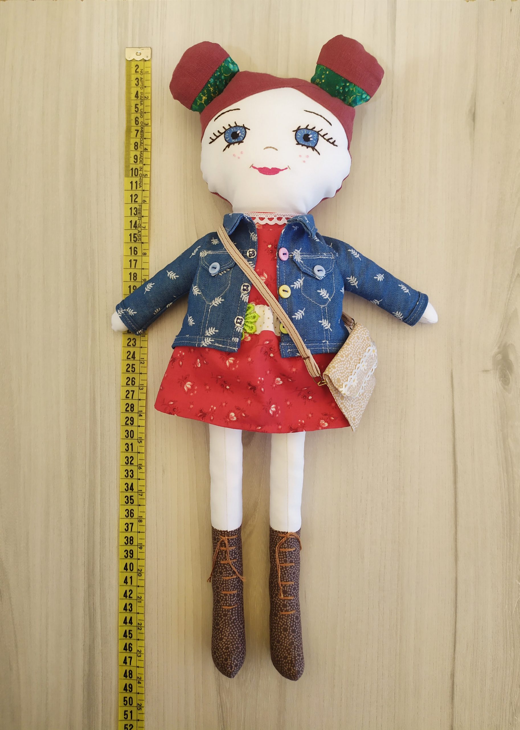 It is a 18,5 inches tall doll (47/48 cm) made using pure cotton Patchwork fabrics, 100% natural linen and filled with hypoallergenic material (doesn´t generate mites) that facilitates its complete drying after washing.