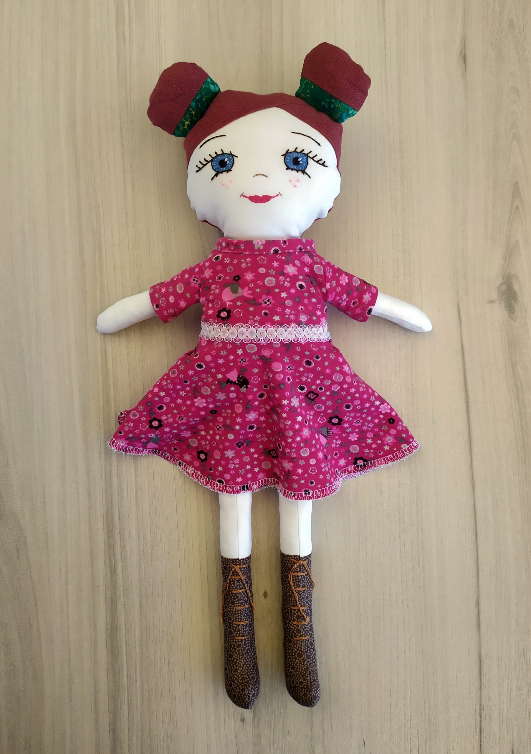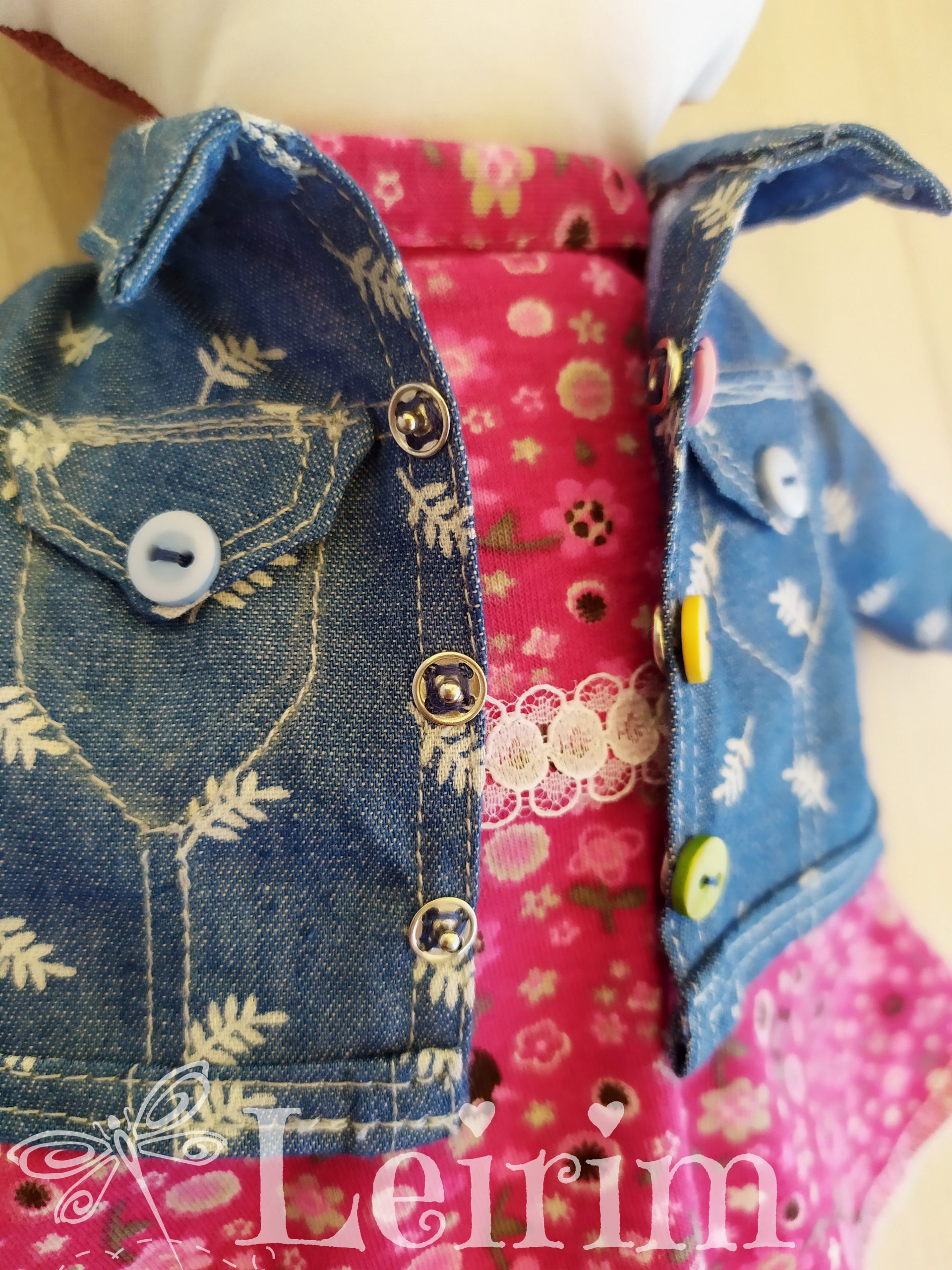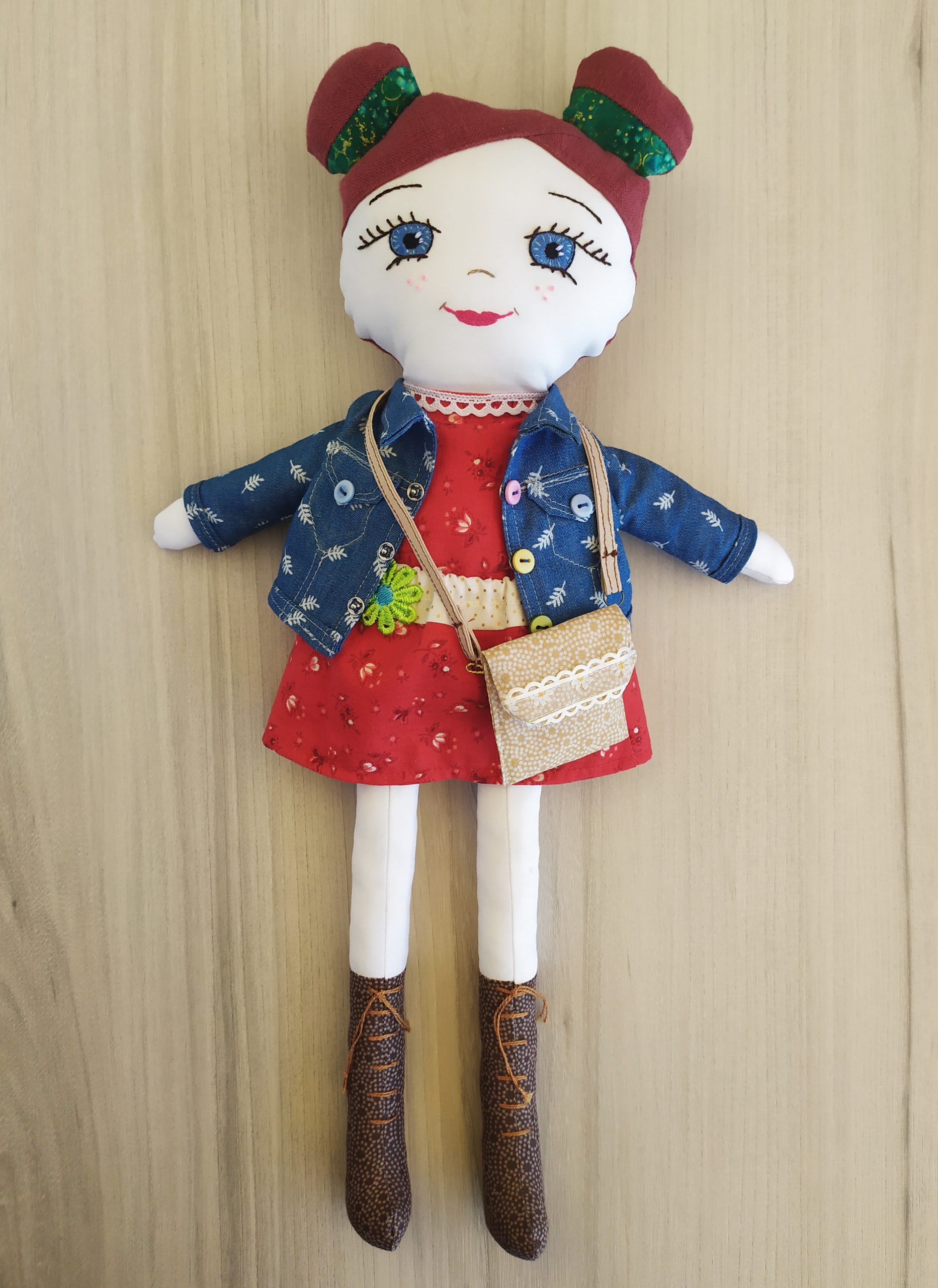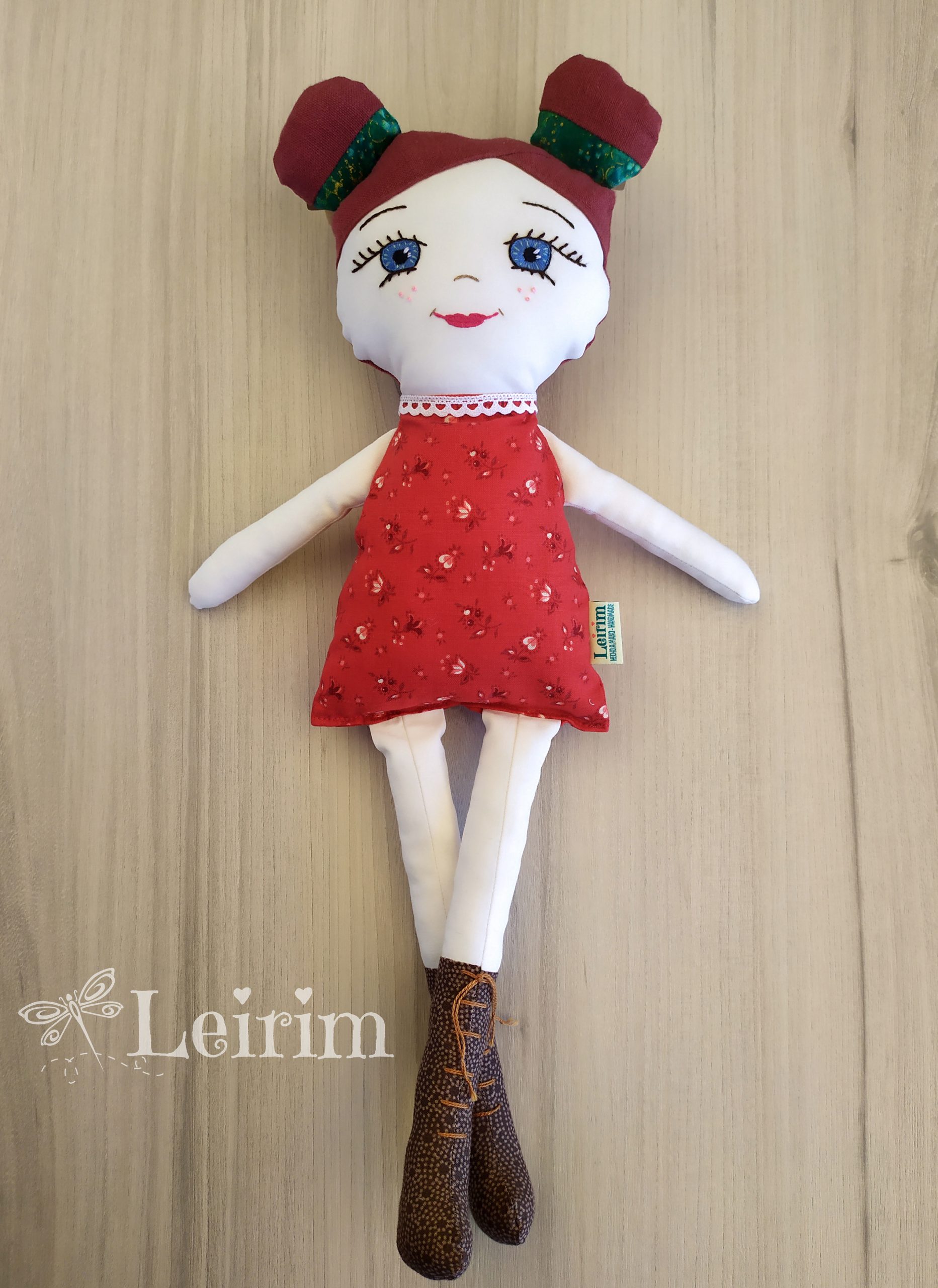 It is a 18,5 inches tall doll (47/48 cm) made using pure cotton Patchwork fabrics, 100% natural linen and filled with hypoallergenic material (doesn´t generate mites) that facilitates its complete drying after washing.