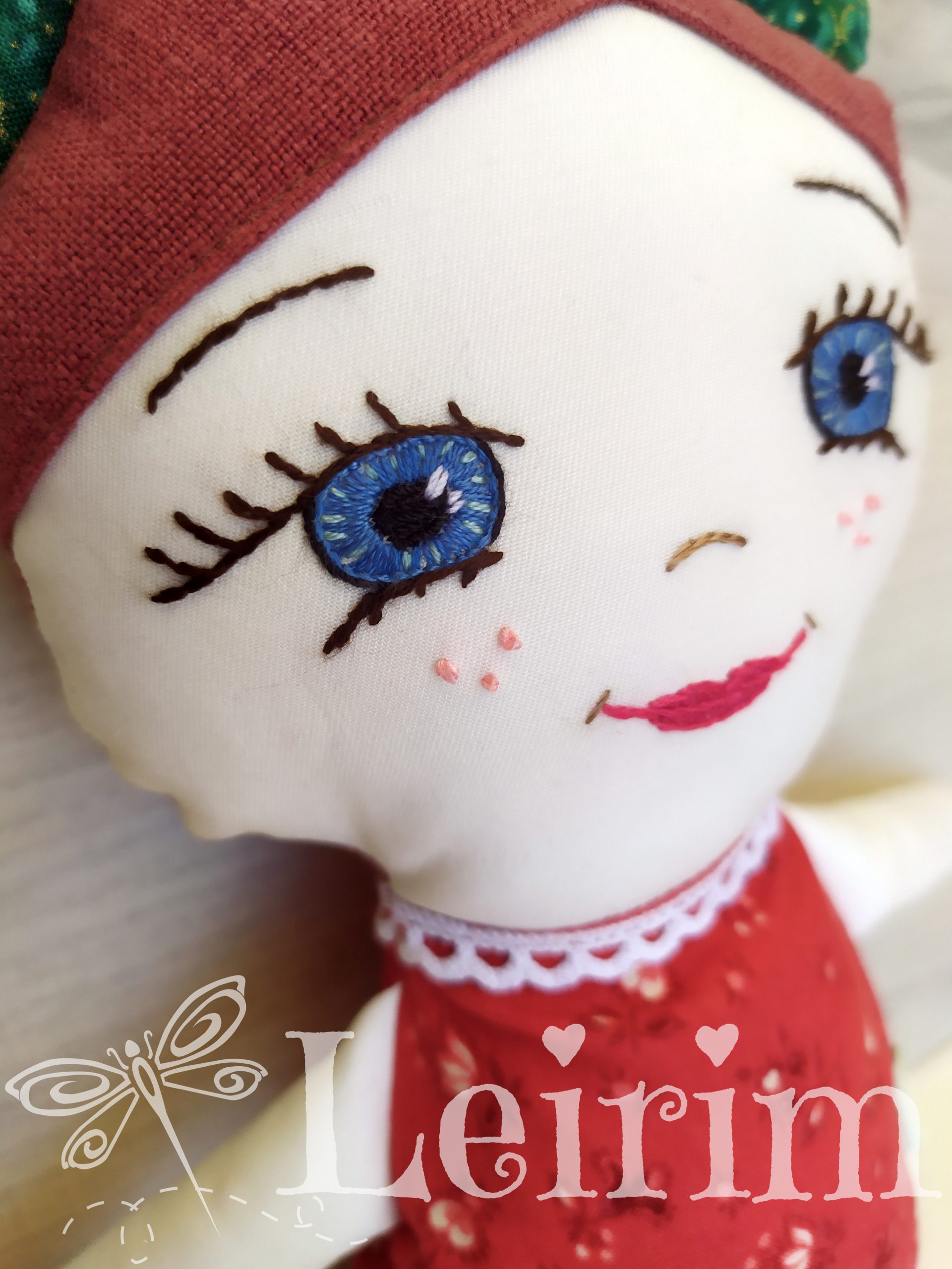 OOAK handmade and hand-embroidered doll made in natural cotton fabrics