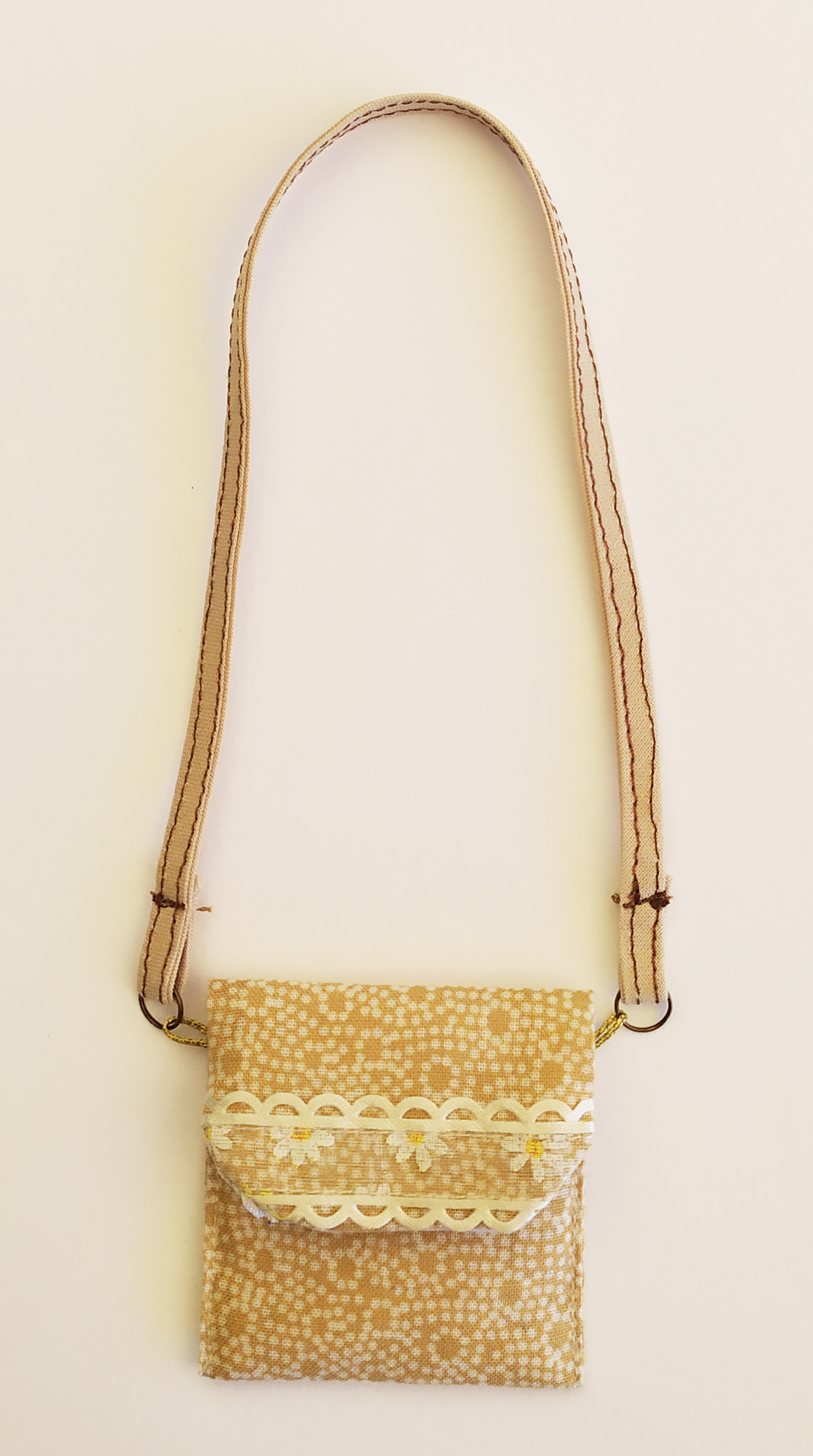 * Cotton Cross purse made with golden thread straps and metal rings.